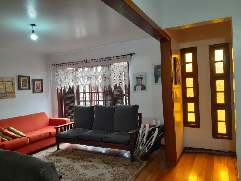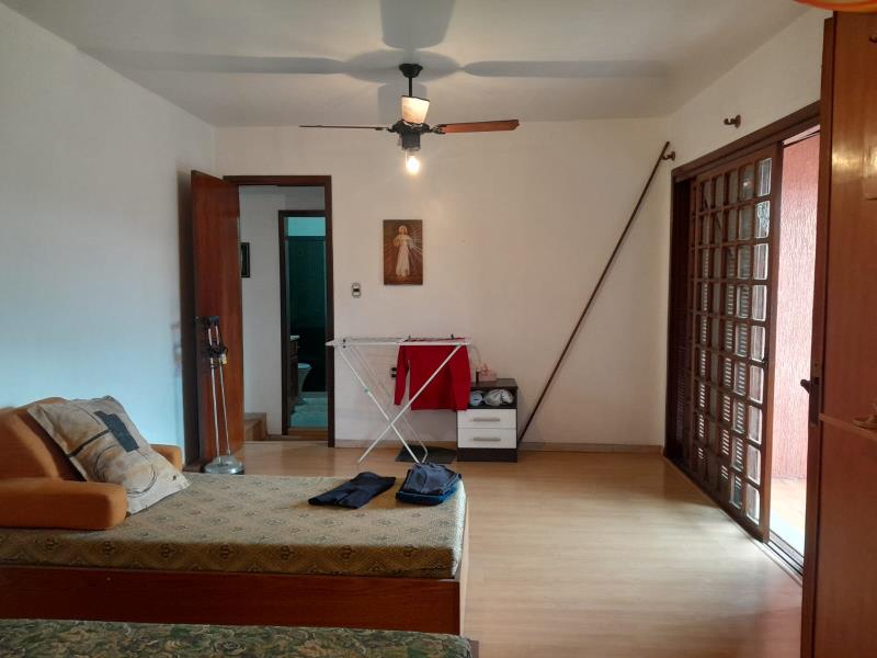 Excelente casa de alvenaria com 223 m² de área. Piso Térreo: ampla sala com lareira, sala de jantar, banheiro social, depósito, cozinha com móveis sob medida, ampla área de serviços , lavanderia, garagem fechada para 2 carros grandes, churrasqueira, piso taboão. Piso Superior: 4 dormitórios sendo 01 suite, closed, 03 dormitórios sendo 02 com sacada, banheiro social, 02 Ar Split, piso laminado. Água quente, aberturas em madeira Louro Feijó. Terreno medindo 10x58 todo murado e gradeado, árvores frutíferas.
